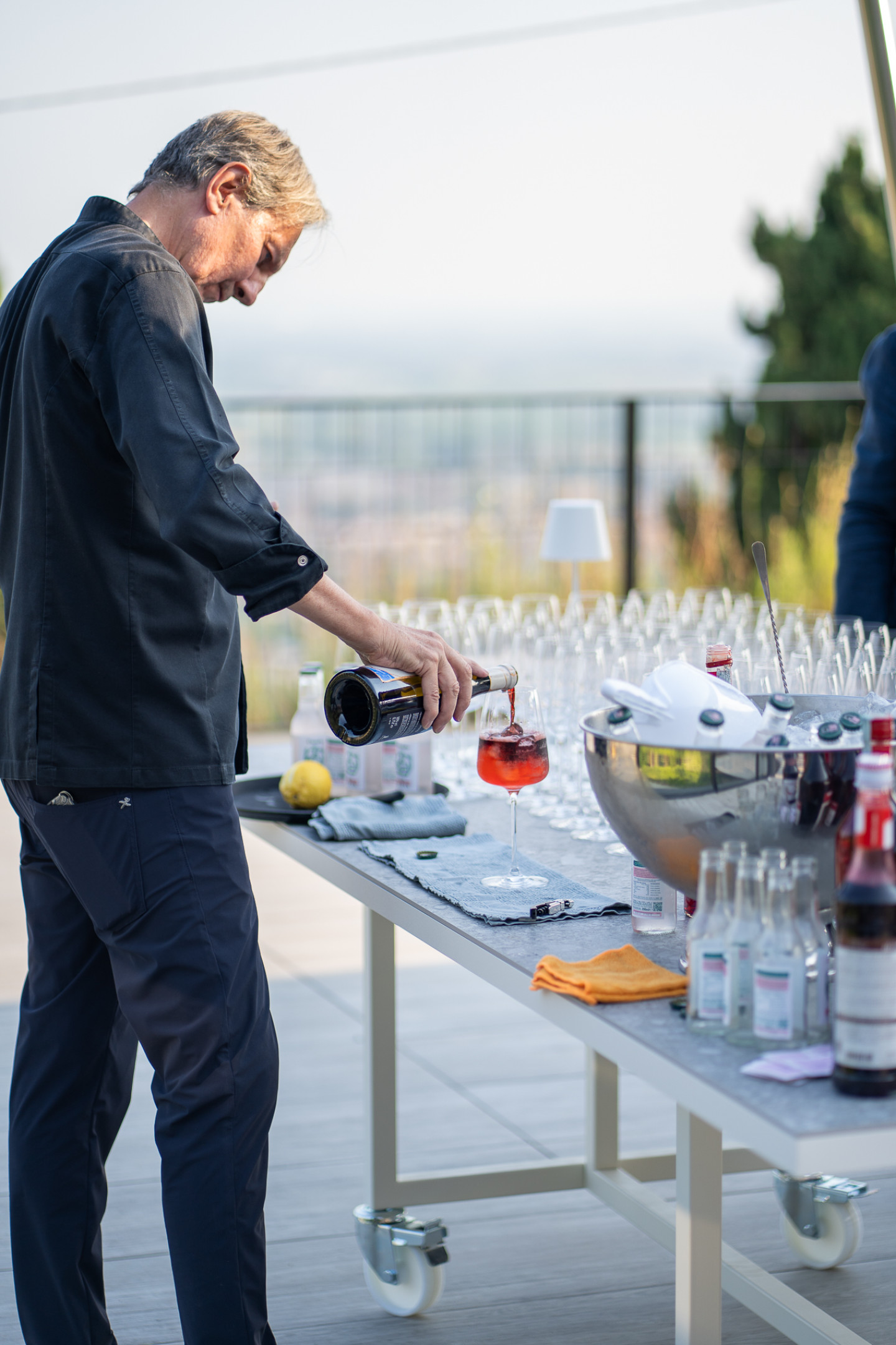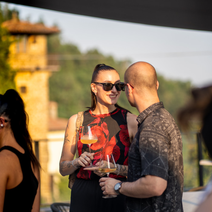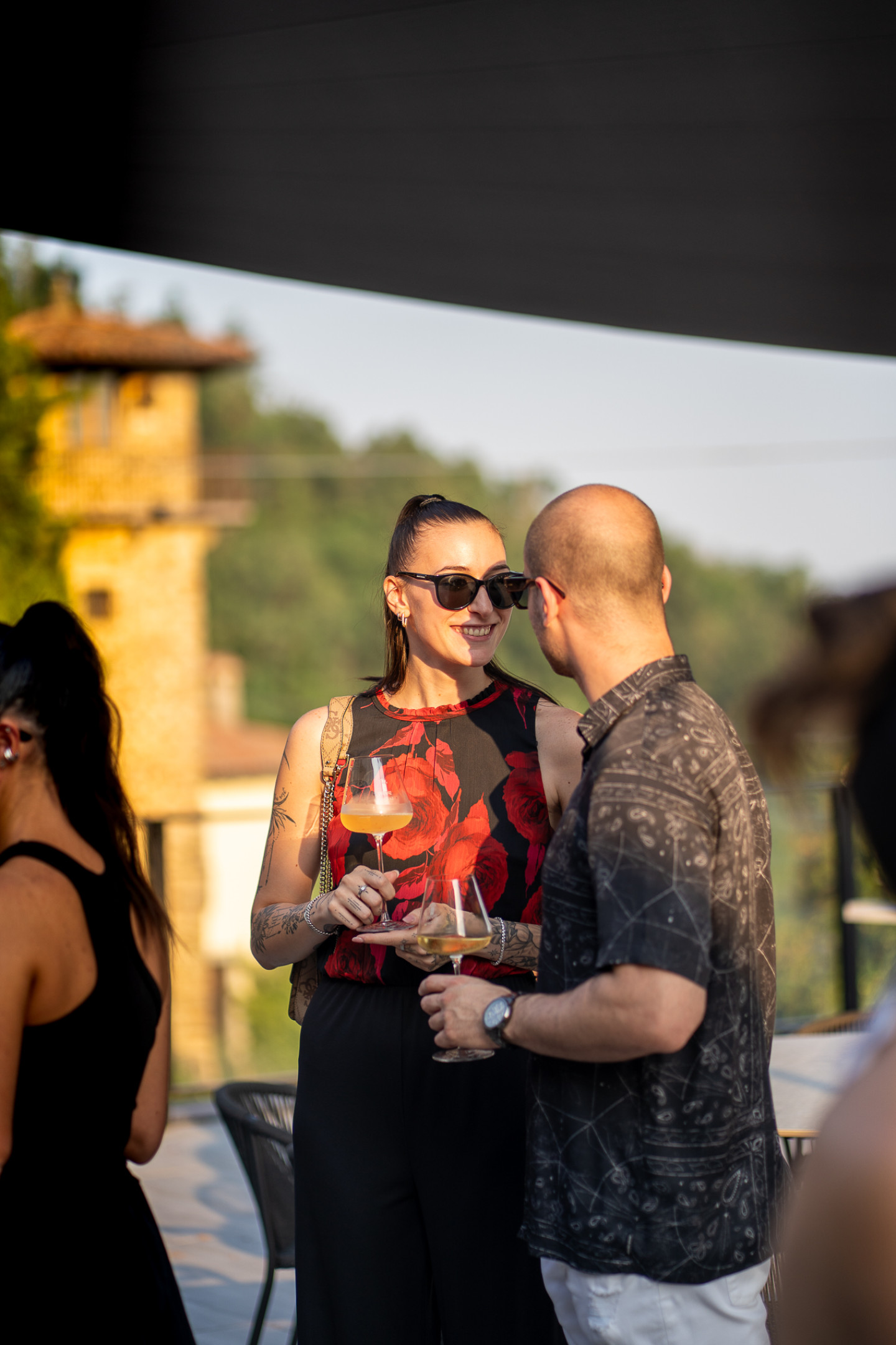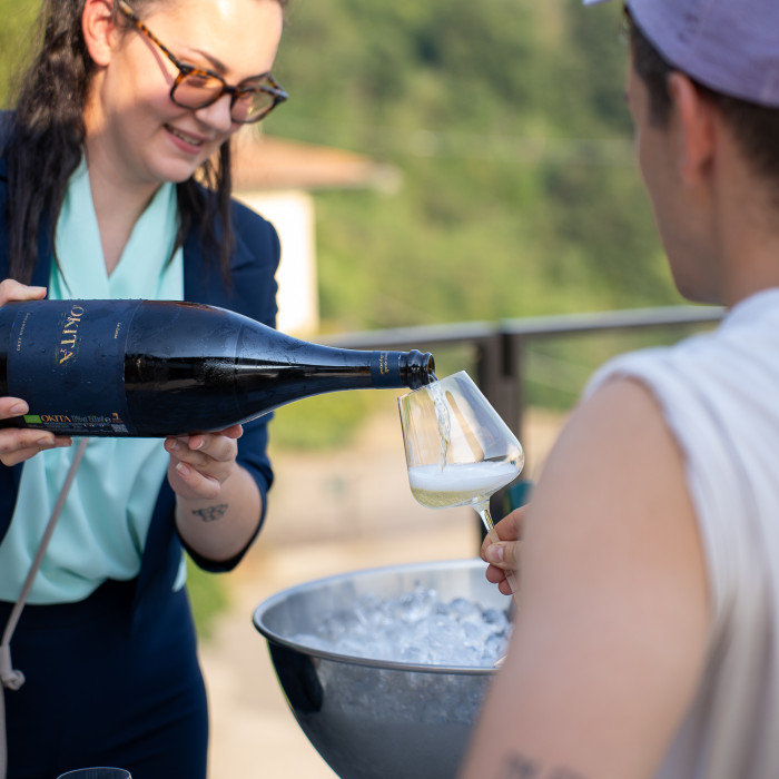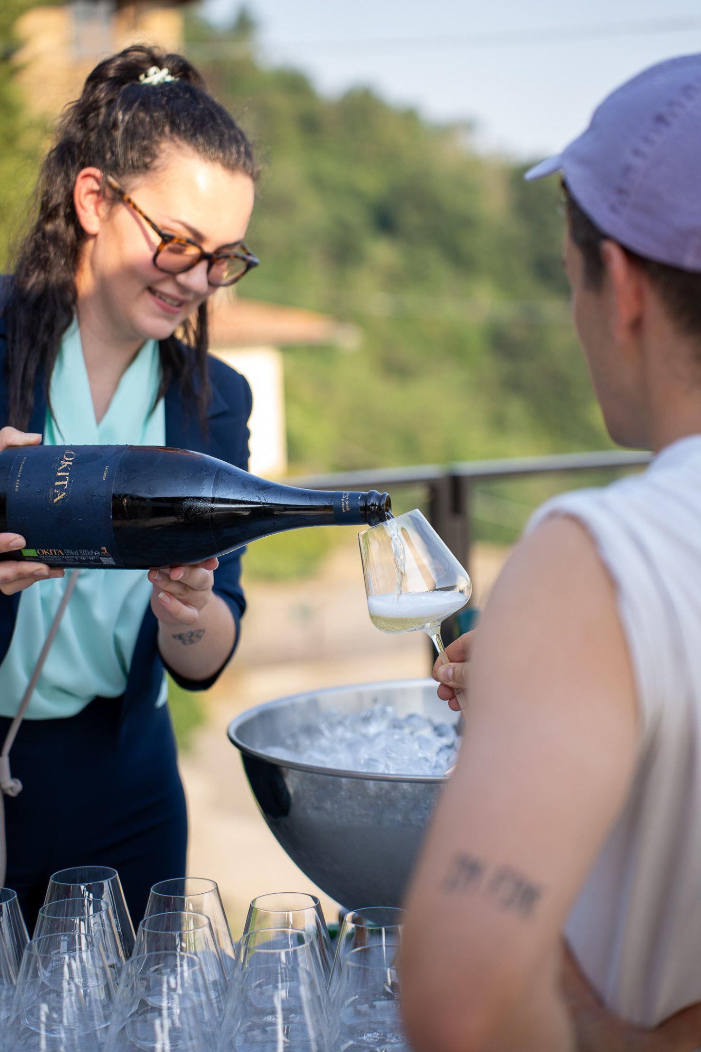 Con noi c’era Tony de Le Iris, anima e shaker di uno dei cocktail bar più amati di Bergamo. Il suo Donizetti Spritz ha aperto la serata insieme al nostro Okita Metodo Classico.