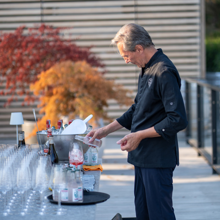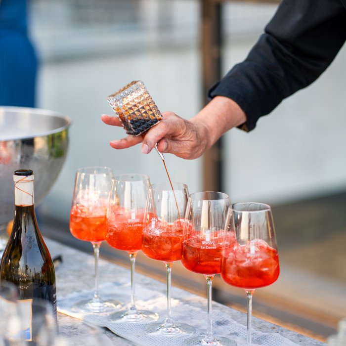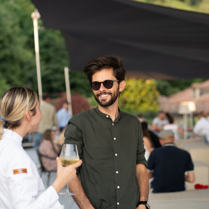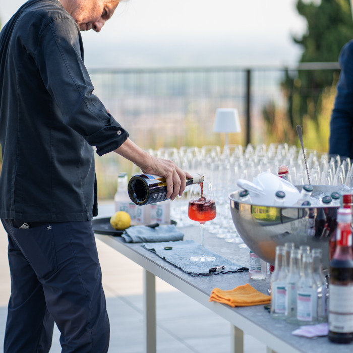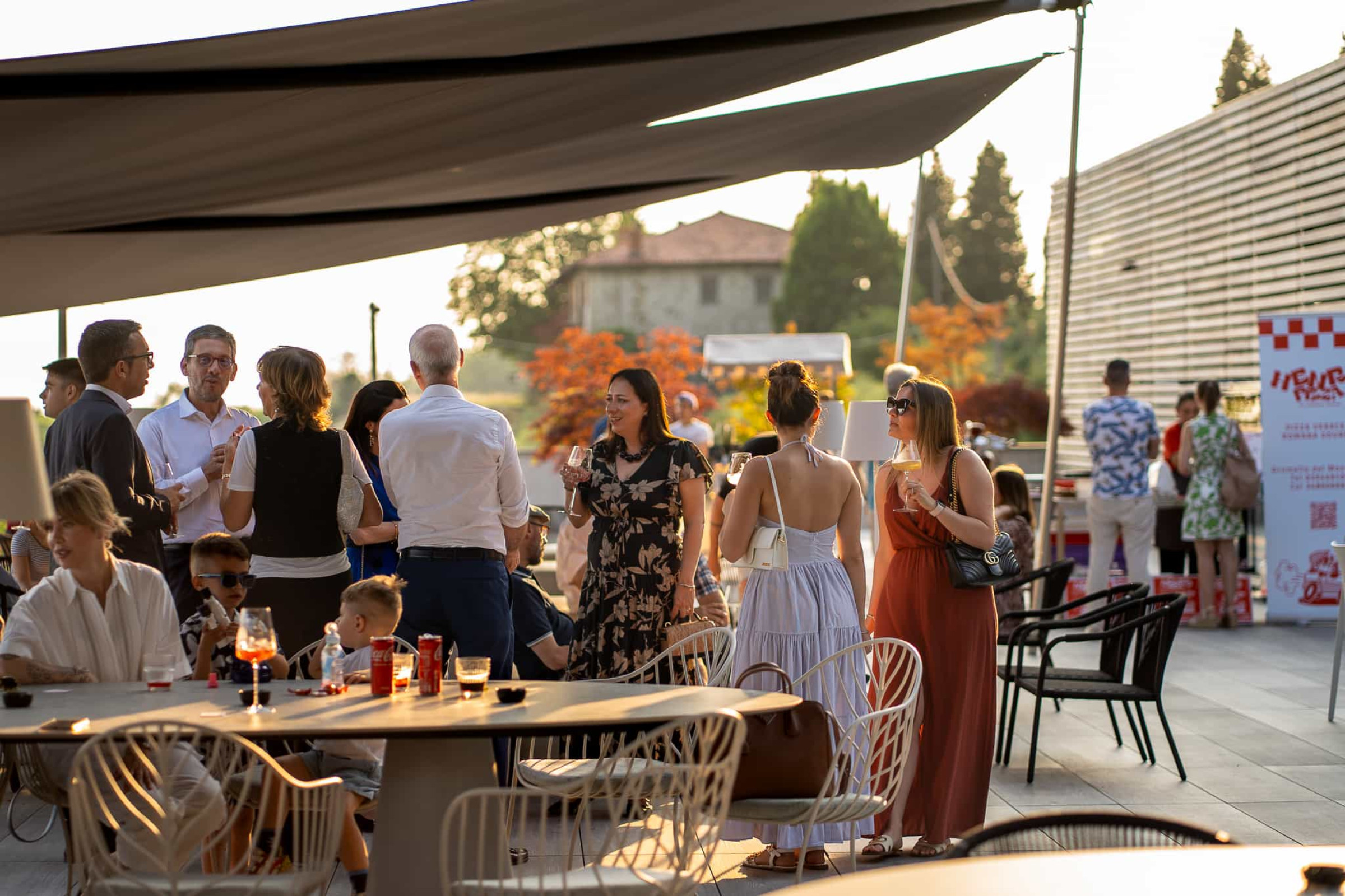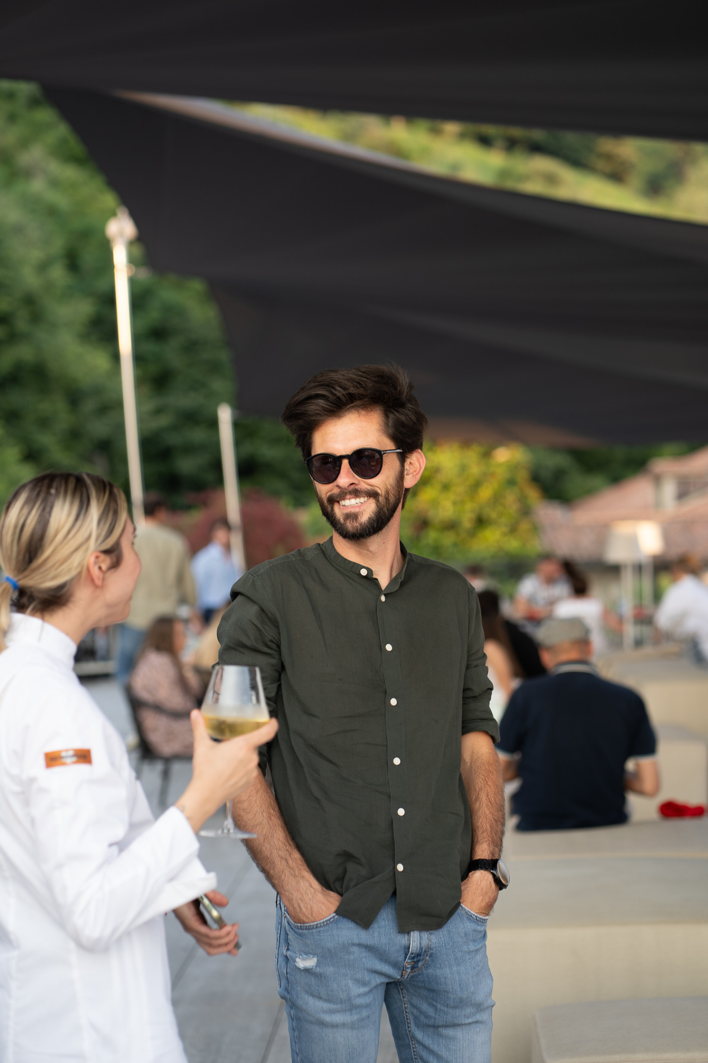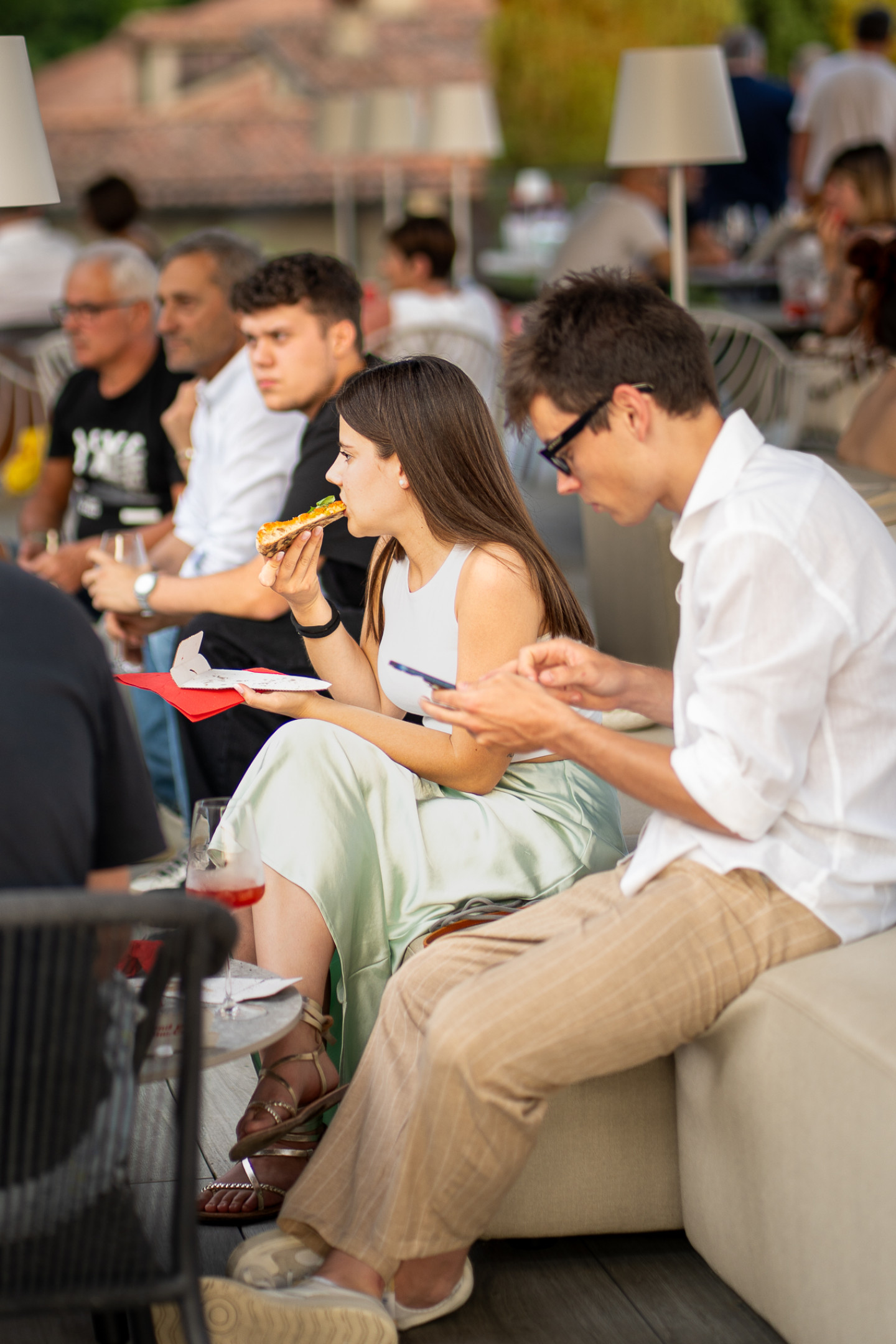 Con noi c’era Tony de Le Iris, anima e shaker di uno dei cocktail bar più amati di Bergamo. Il suo Donizetti Spritz ha aperto la serata insieme al nostro Okita Metodo Classico.